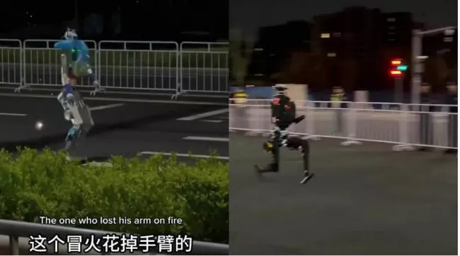 4 月 11 日深夜进行的赛前全流程测试中,中共官媒《人民日报》发布相关报道与影片,多台人形机器人呈现流畅奔跑、步伐稳健的状态,被形容为“健步如飞”,展现出技术进展的正面形象。