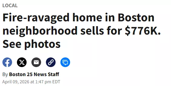 在Dorchester这个靠近Boston的传统社区,一套几乎被火灾烧毁、从内部结构到外观都严重受损的双拼住宅,最近却以77.6万美元的价格顺利成交,而且从挂牌到完成交易,只用了短短三天时间。