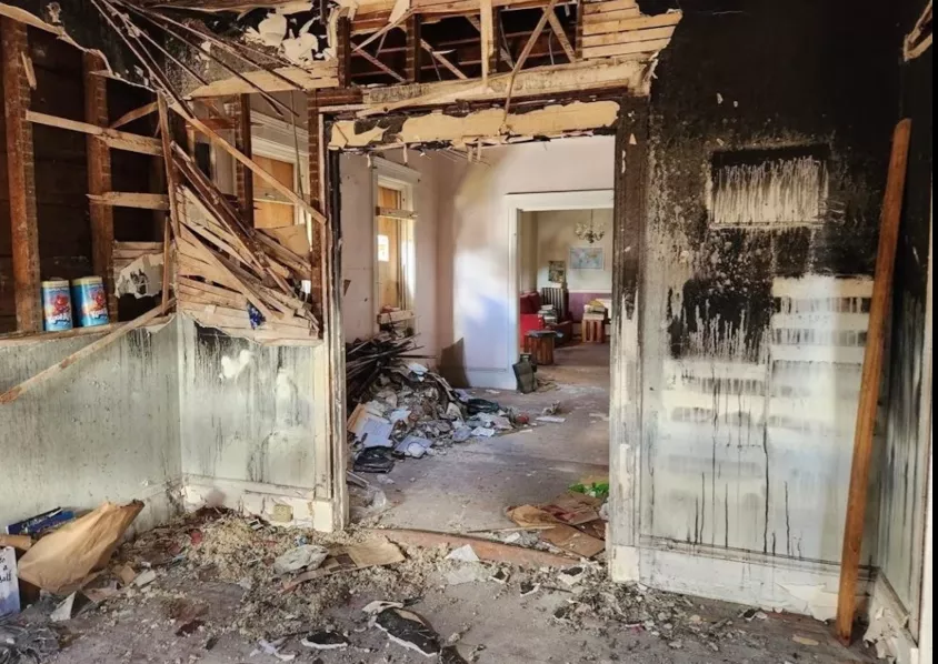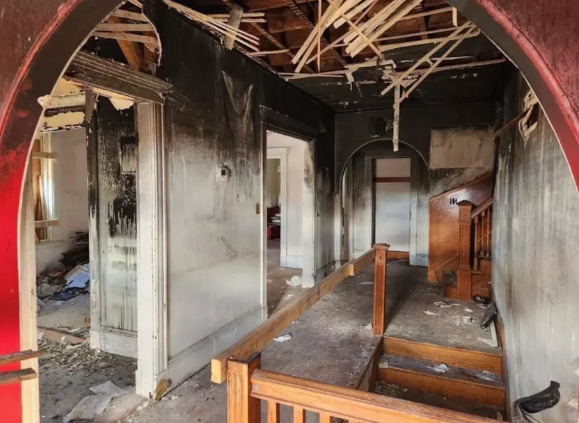 问题在于,这套房子在2024年11月经历了一场严重火灾,屋内大面积被烧毁,墙体发黑、结构受损,屋顶和部分承重位置也出现了明显问题。从居住角度来看,已经完全不具备“拎包入住”的条件,甚至连普通翻修都很难一步到位。很多人看到照片后的第一反应都是,这已经不像一套房子,更像是一块“带着残破房壳的地”。