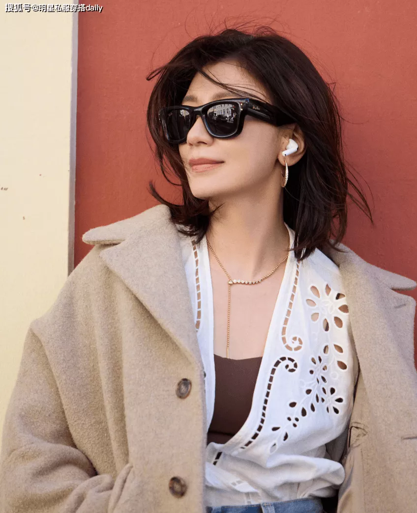 在乍暖还寒的春季,贾静雯外搭了一件卡其色毛呢大衣,保暖时尚两不误!在配饰搭配上,耳环和项链都自带法式感,微风拂面,美的封神了!