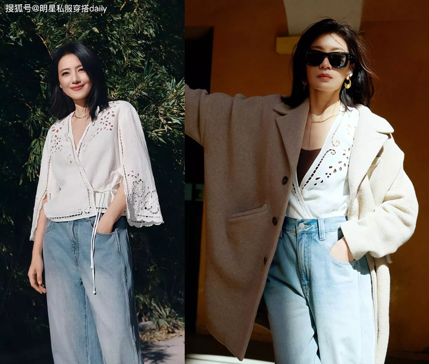 不仅长相类似,时尚品味也有一些雷同!虽然贾静雯是小个子,但是比例好,穿高圆圆同款衣,也能美的很出挑!