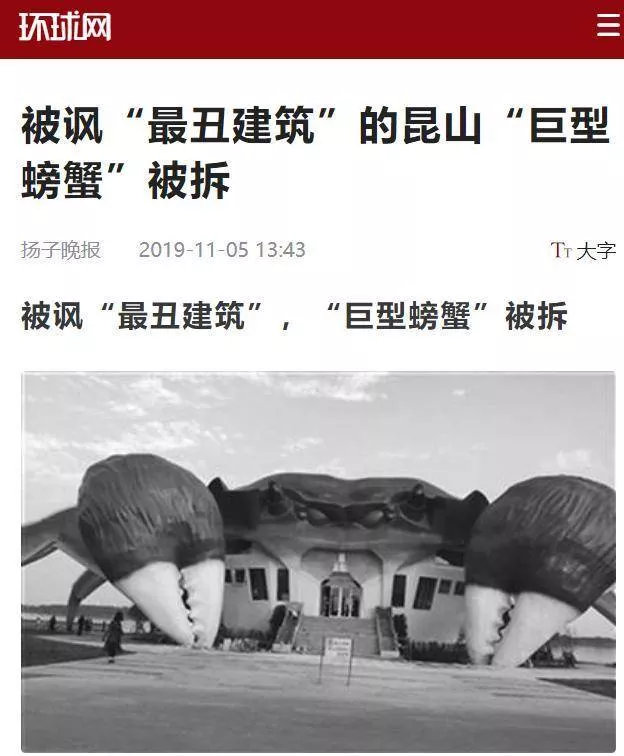 最终,它因为“造型怪异,破坏景观”等原因,在相关评选中被列为丑陋建筑,并在建成一段时间后,因验收和土地规划问题被拆除。这座造价1360多万元的奇特建筑,就这样结束了它短暂的“蟹”生。