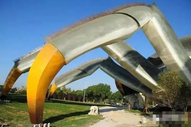 为了宣传阳澄湖大闸蟹文化,昆山巴城在阳澄湖边建起了一座“大闸蟹生态馆”。这座建筑在“形似”上可以说做到了极致:青背白肚,爪子绒毛分明,连蟹腿关节处的细节都栩栩如生,堪称写实主义建筑的“典范”。