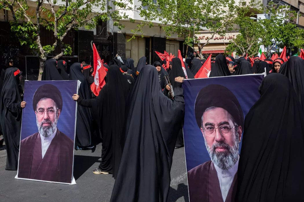 周五,伊朗政府支持者在德黑兰举行集会,人们手持新任最高领袖穆赫塔巴·哈梅内伊的海报。