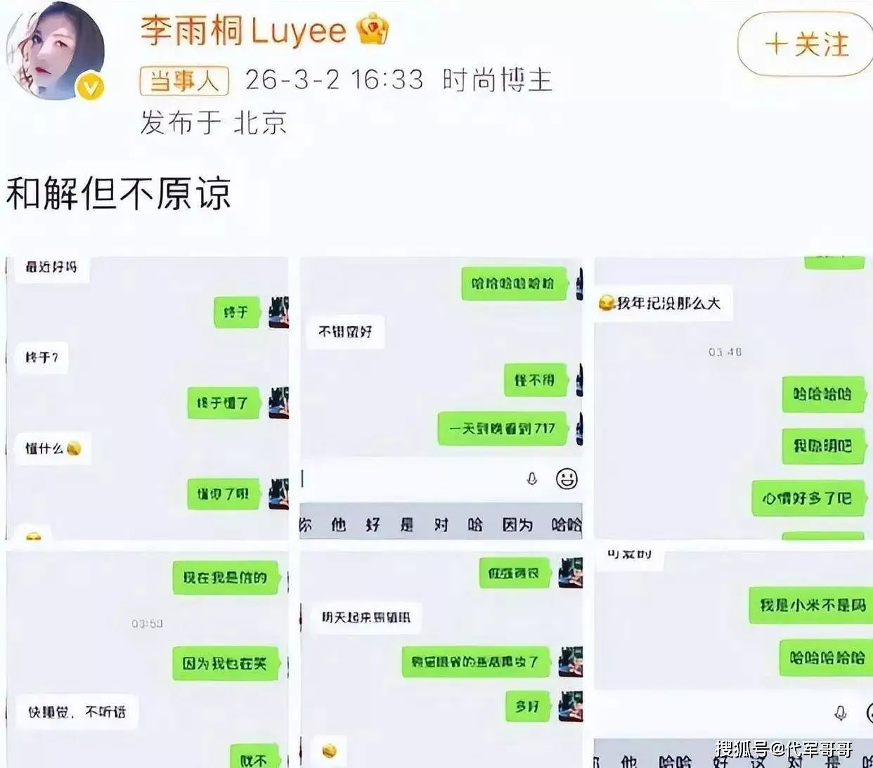 2025年,事件出现戏剧性反转,李雨桐在直播中公开表示,自己已与薛之谦达成和解,不仅称赞薛之谦“人很好”“值得喜欢”,还主动为其新歌宣传,与此前激烈控诉的态度形成鲜明反差,当时网友普遍认为两人近十年的恩怨已彻底了结。然而,这份“和解”并未持续太久,2026年3月2日,李雨桐突然再度在微博实名喊话薛之谦,态度彻底反转,言辞激烈地放狠话“今天我就一个个公开所有的真相”“君子报仇,十年不晚”,再度点燃这场跨越十年的恩怨。