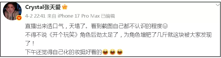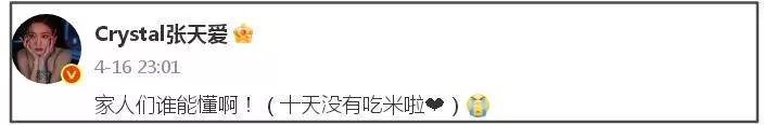 那张天爱发福到底是备孕还是普通肥胖,目前还不好说,从她社媒动态来看,出席活动有好好瘦身,发文透露“10天没有吃米”,想要告诉大家有好好减肥,似乎是侧面辟谣备孕传闻。