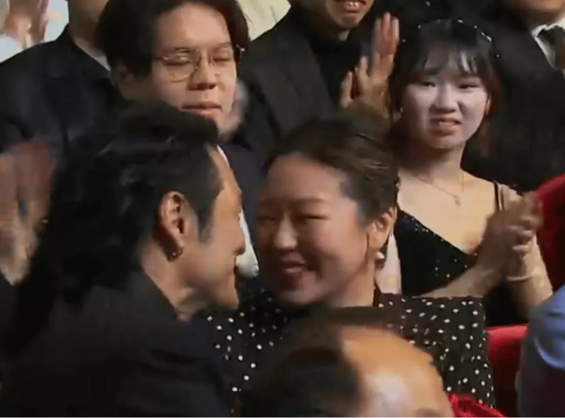 获奖之后,杜德伟第一时间亲吻妻子,杜德伟妻子比他小24岁,多亏杜德伟保养不错,夫妻俩同框看不出太大年龄差。