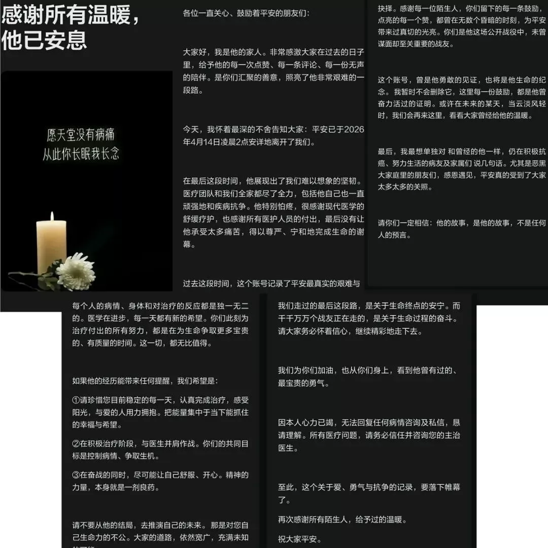 这个帐号曾是他勇敢的见证,也将是他生命的纪念……每一份鼓励,都是他曾奋力活过的证明。