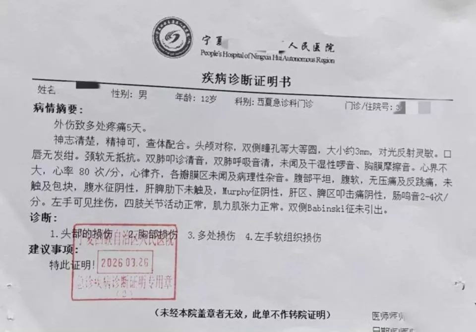 银川一名12岁学生,遭九名少年拦车、围殴、胁迫入室搜家。事件曝光,引起公愤。