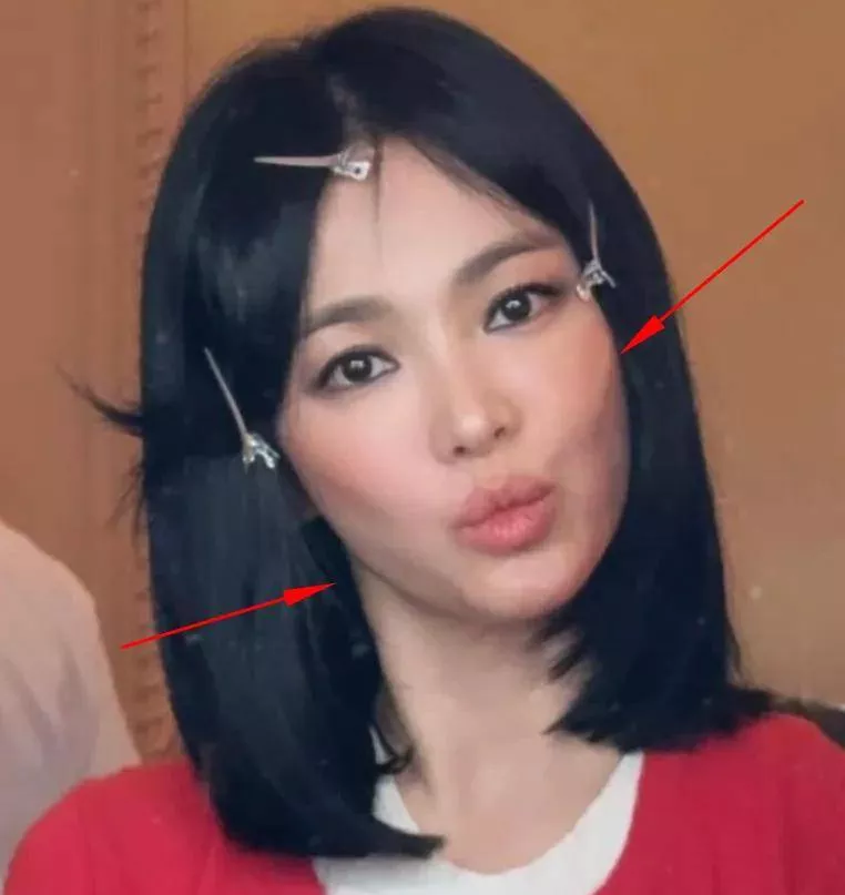宋慧乔似乎对自己的妆容很满意,对着镜子摆出各种姿势自拍,只是她一嘟嘴,脸颊就凹陷了,整张脸变得坑坑洼洼,瞬间就有了僵感,全包眼线和棕色系妆容也不适合她,泰式辣妹妆到了44岁的宋慧乔脸上,显脏又邋遢,说到底,还是宋慧乔脸部不够饱满了。