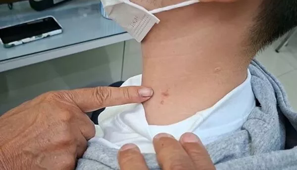 尽管“小推”极力挣扎,但因对方人多势众而无法脱困,导致颈部留下多处明显吻痕,令他感到极度不适。