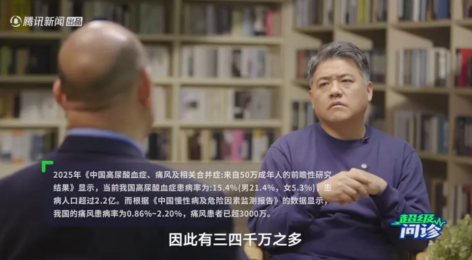 在中国,像他一样的人,正以每年约9.7%的速度增长。截至2026年,中国高尿酸血症患者(痛风的前序阶段)已突破2.2亿,确诊痛风患者接近3000万。这意味着,每10到15个成年人中,就有一个人正处在痛风的威胁之中。