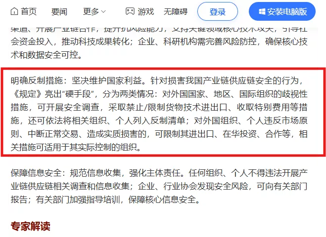 该新规出台有几大背景:1.2018年中美贸易摩擦以来,美国先后通过《芯片与科学法案》《通胀削减法案》,欧盟、日、韩亦相继推出“去风险化”政策。部分跨国企业开始重新评估在华采购与生产布局。2.中国此前已陆续建立涉外法律工具箱,如《不可靠实体清单规定》《反外国制裁法》《对外关系法》《出口管制法》《数据安全法》等。3.“产业链自主可控”、“供应链韧性”已成为近两年的政策高频词,而此规首次将“关键领域清单”的识别与动态调整机制写入。