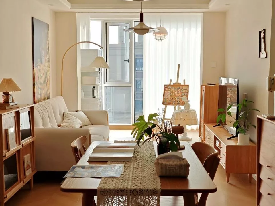 在深圳,Bella和小项的新家装修也已结束。原木风的家里,每一个细节都是两人精心设计的。他们砸掉了非承重墙,做成开放式厨房,通铺了地板,追求“一推开门就能从厨房看到餐厅客厅的通透感”。担心阳台封窗后晾衣架影响美观,两人毫不犹豫花一万多买了洗烘套装。
