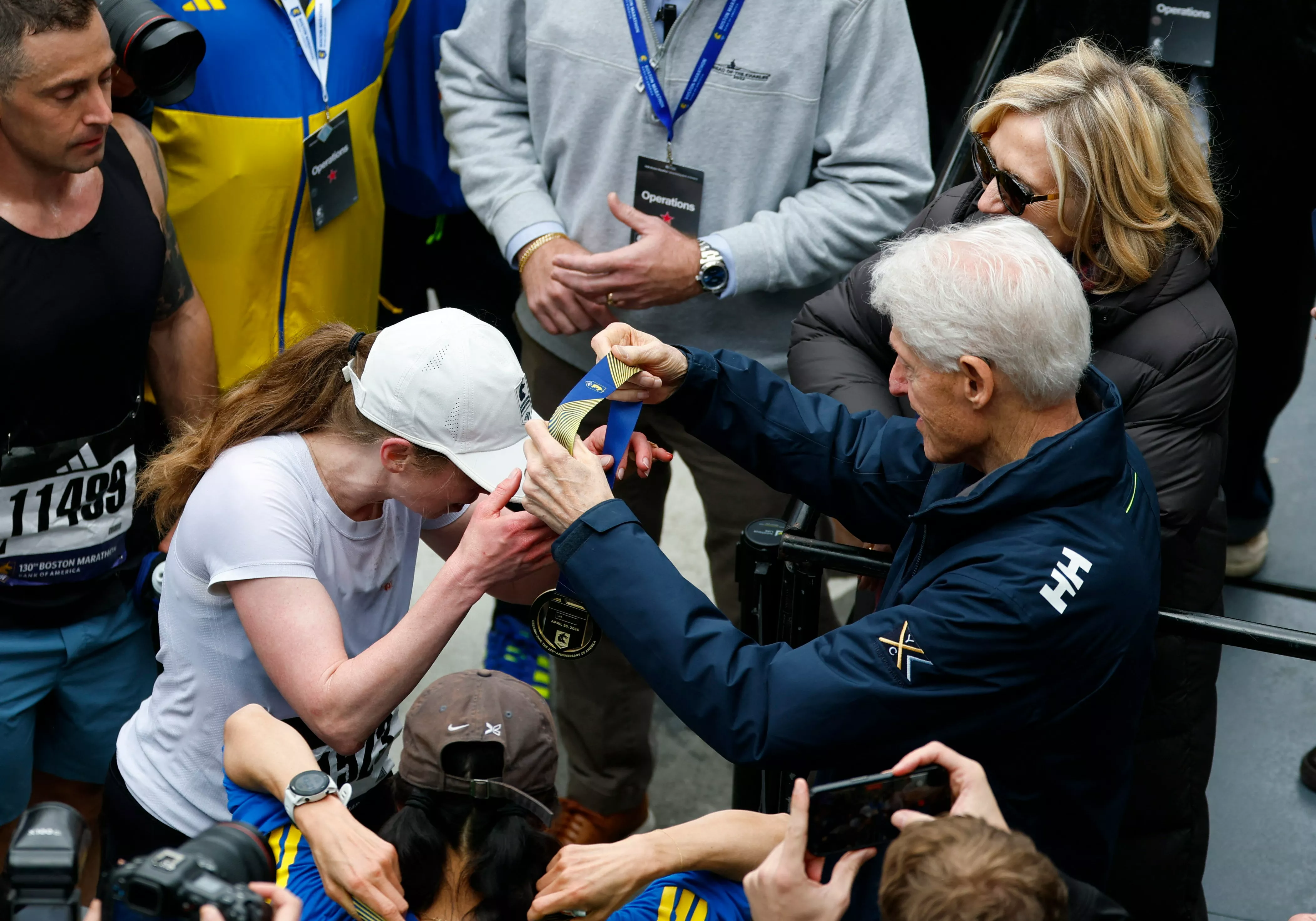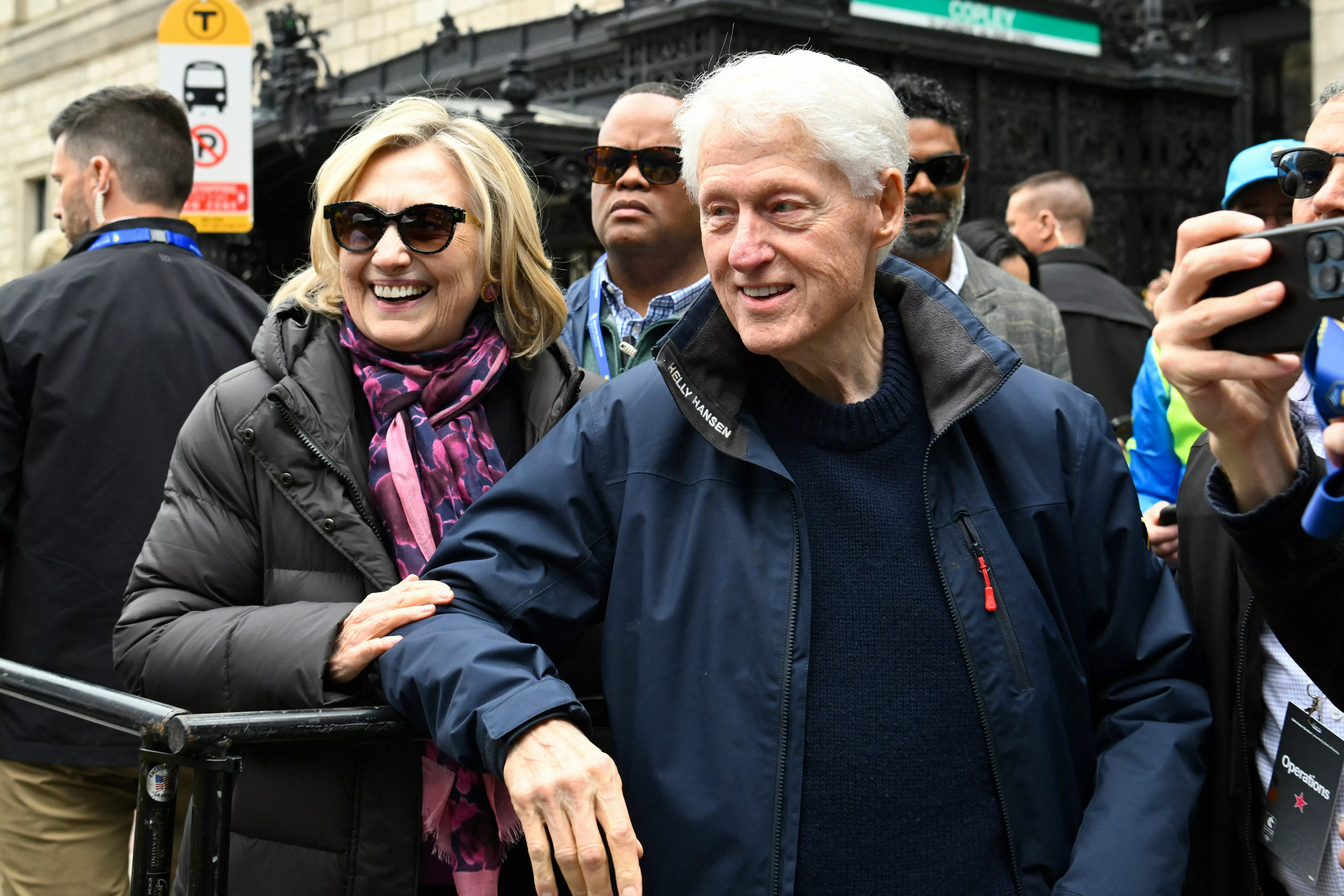 2026波士顿马拉松(Boston Marathon/波马)终点附近有两位名人嘉宾——美国前总统克林顿及他的太太、前国务卿希拉莉。二人罕有双双公开亮相,并非为公务而来,而是作为父母,亲自为参赛的女儿Chelsea打气。