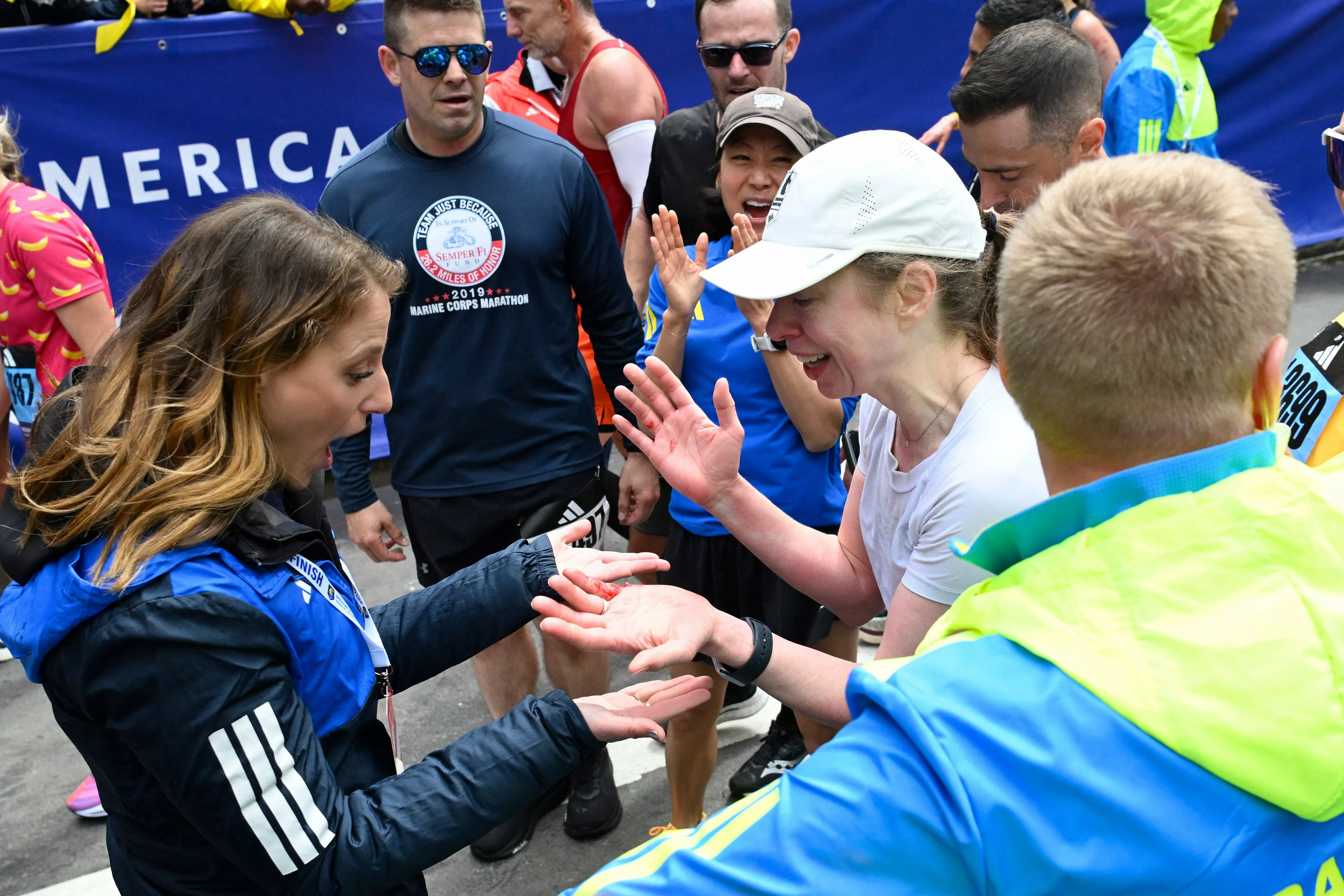 Chelsea以3小时40分52秒完成,希拉莉带着手写的横额为女儿打气,并在终点后方守候,Chelsea跟父母拥抱后,由克林顿亲自为她颁发完赛奖牌。