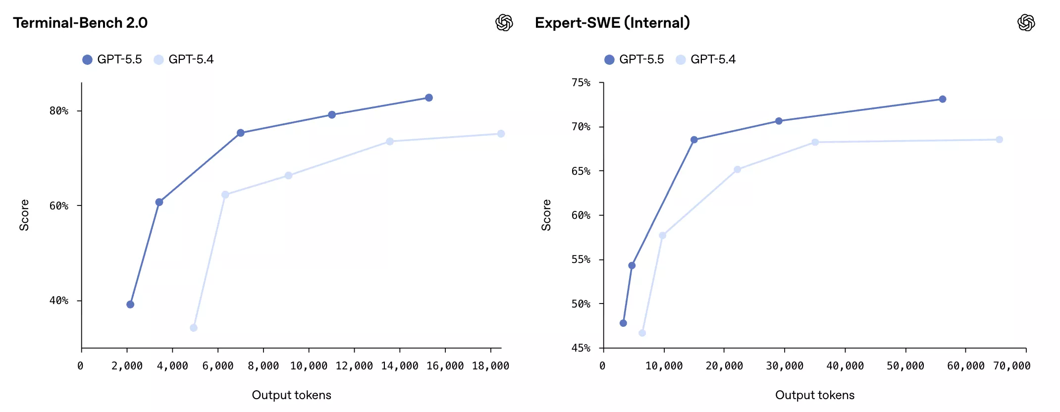 值得关注的是,GPT-5.5在上述三项测试中均以更少的token消耗实现了更高得分。