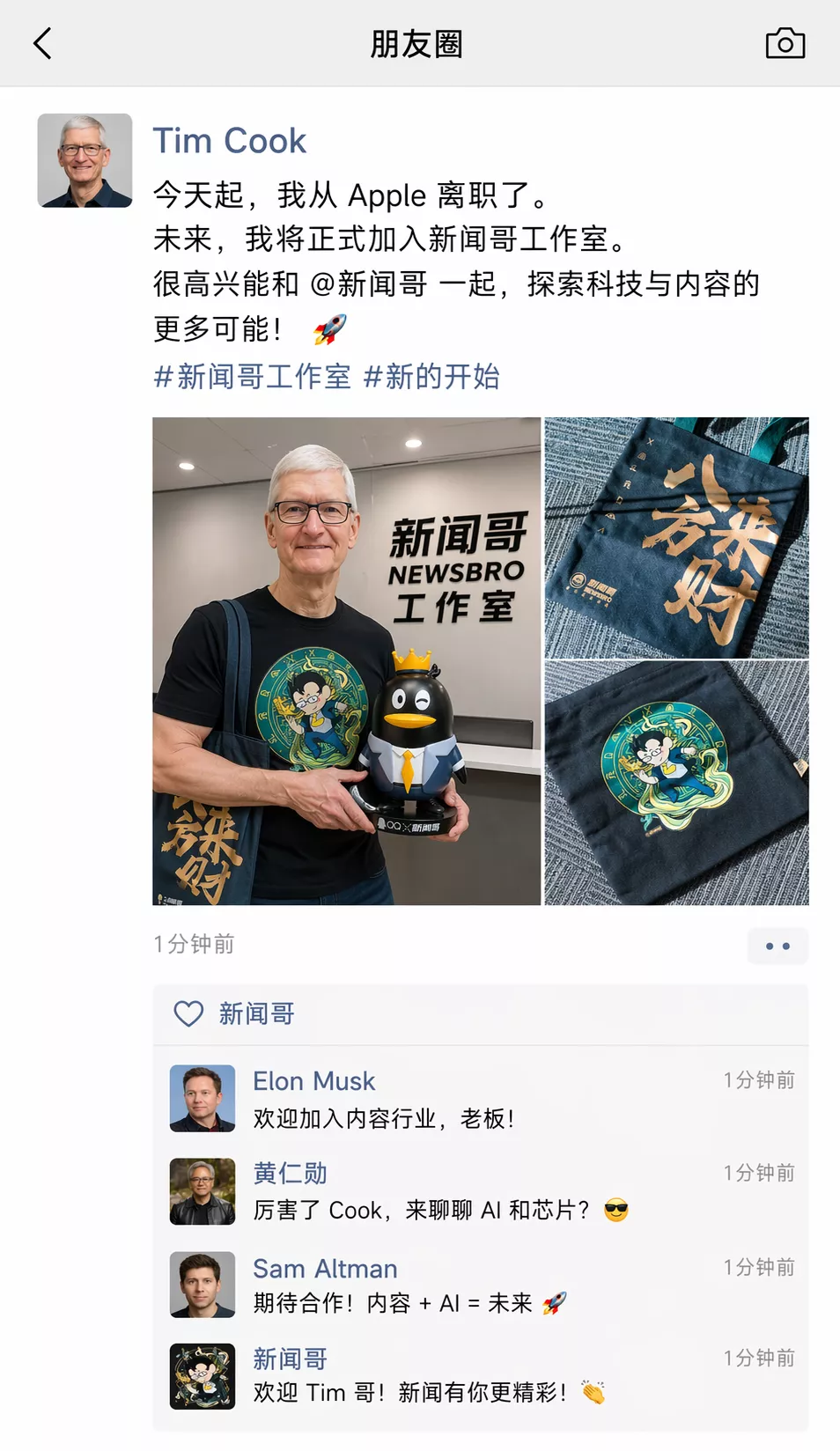 他明明加入的是新闻哥,今天上午刚发的朋友圈。
