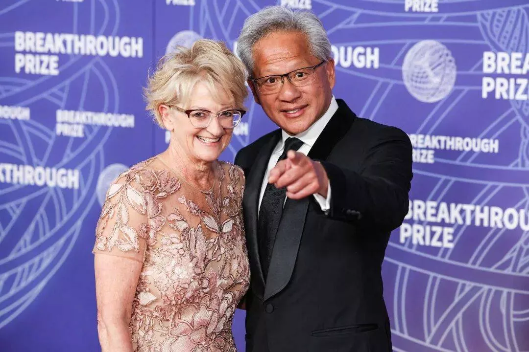 黄仁勋脱下了标志性的皮衣,换上了一身笔挺的西装,和老婆秀恩爱,说好的只有一套西装呢?