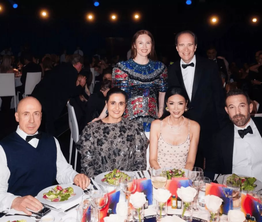 连续多年出席突破奖的她,已经成了场上的常驻嘉宾,这次和突破奖联合创始人Yuri Milner(左)同桌吃晚宴,合影还稳坐C位,Yuri和大本都被迫镶边。