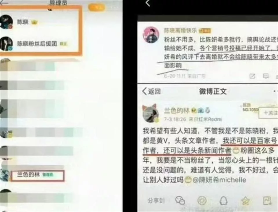 这场官司之所以引发巨大关注,不仅仅因为长达七年的网暴,更因为施暴者的特殊身份——陈晓的资深大粉。 网友扒出的截图显示,这位黑粉与陈晓本人、陈晓的官方粉丝团同在一个社交群组内。 这让舆论的焦点不可避免地转向了陈晓:作为前夫,同时也是这些极端粉丝的偶像,他对此是否知情?为何在长达七年的时间里,从未公开制止或表态?