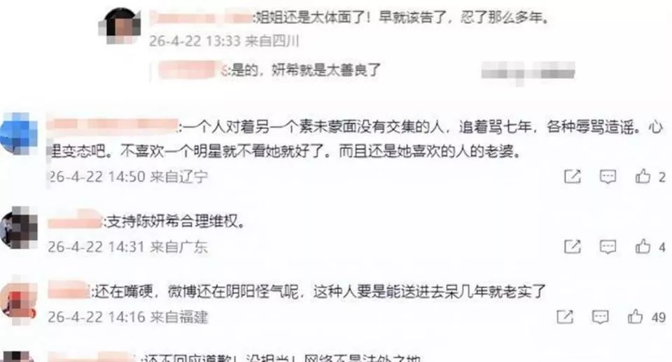 2026年4月20日,陈妍希方面向法院递交了强制执行申请。 两天后,4月22日,律师事务所公开了案件播报,陈妍希工作室也发文确认案件进入强制执行阶段。 工作室同时宣布,未来执行到位的全部4万元赔偿款项,将直接全额捐赠给公益机构。