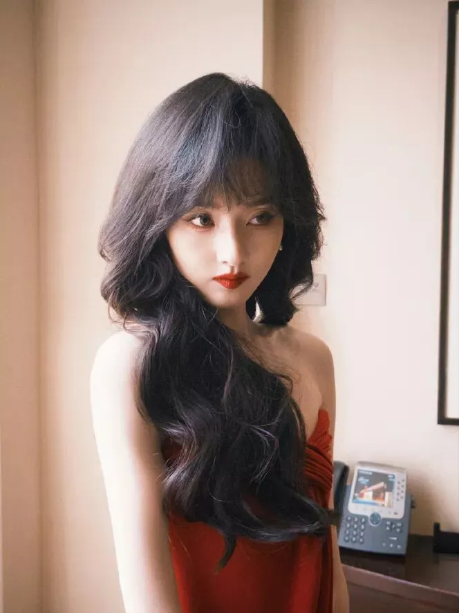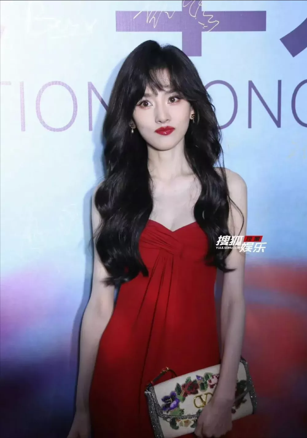 到了晚上,宋祖儿换上一袭大红长裙,搭配大波浪卷发,烈焰红唇,试图走港风明艳路线。可惜的是,过于消瘦的身材让她完全撑不起这身造型。身材没有曲线,反而给人一种“小孩偷穿大人衣服”的违和感。