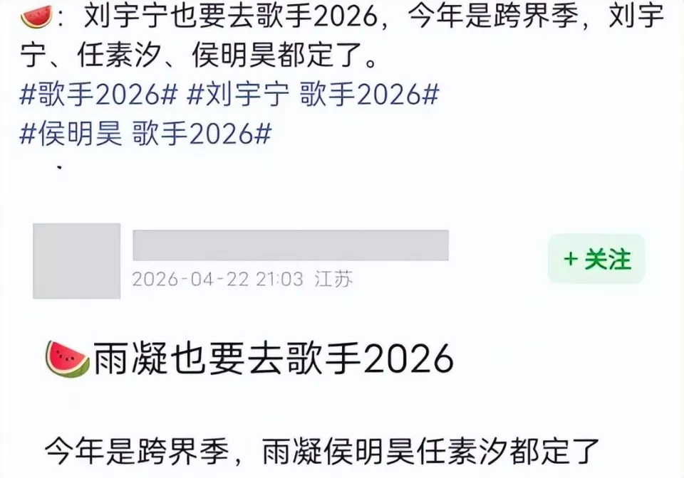 不过,网传《歌手2026》的歌手阵容还没有被证实,正式的阵容需要等到节目官宣。