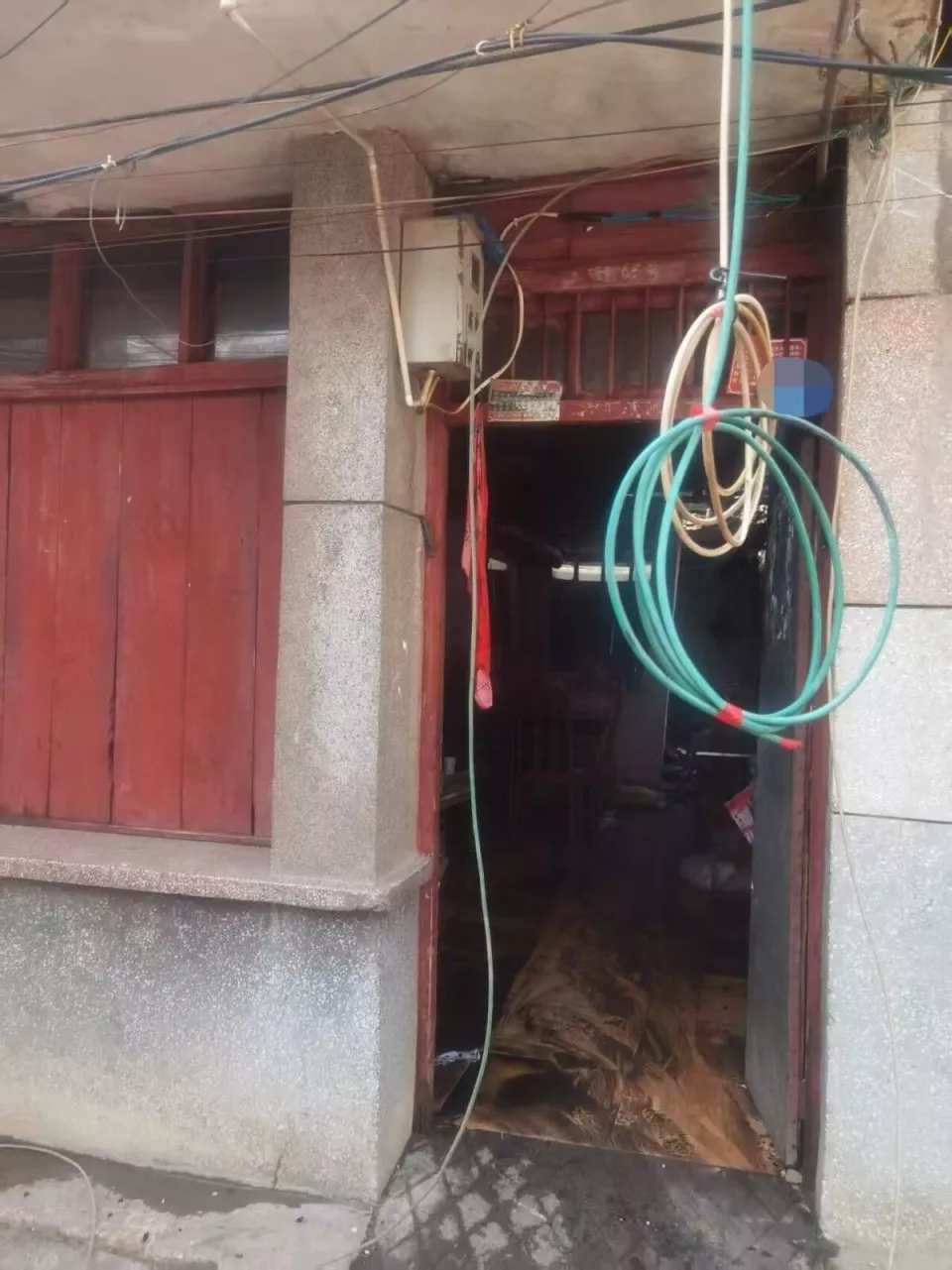 孙颖家的两层老宅是火灾中受影响最小的房屋之一,其提供的火灾后视频显示,这排失火民房的中间房屋已经垮塌,边上三户则还剩框架主体,其中两户的一楼木门和木窗均完整无损,“我的房子曾经修缮过,是砖木结构,占地40多平方米,上下两层,真正受到火灾影响的是屋后的木质阁楼,估计最多20多平方米”。