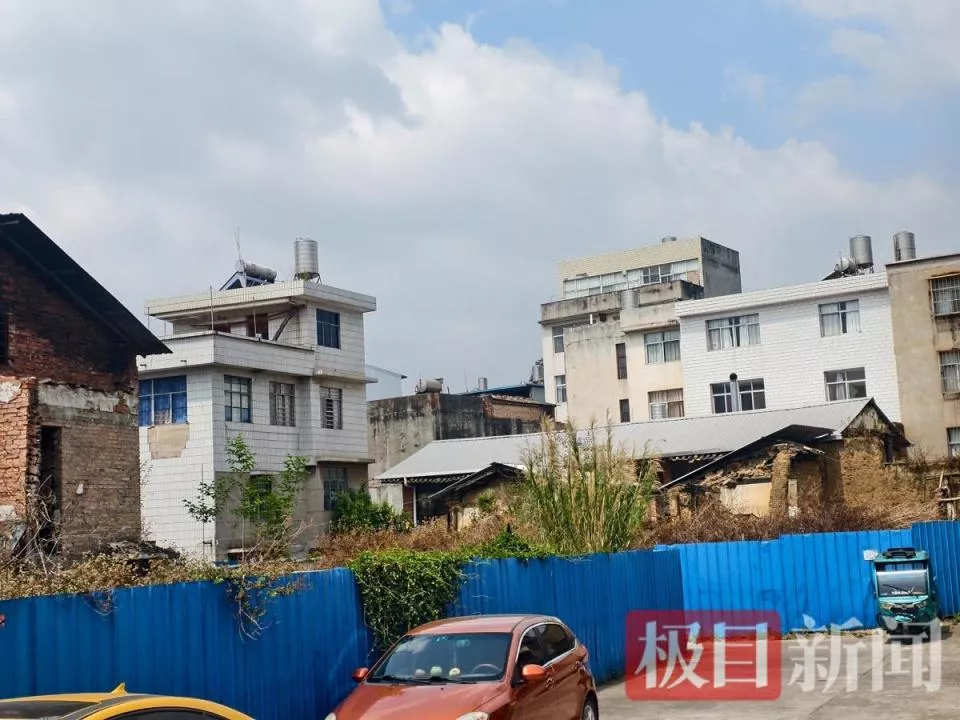 走进这条老旧的街巷,极目新闻记者看到,三年前曾经历过大火的庆云巷民房已不见踪影,事发地周围被蓝色铁皮包围,围挡一侧紧邻红塔区北城中心小学。围挡内杂草丛生,些许杂草已超过两米。