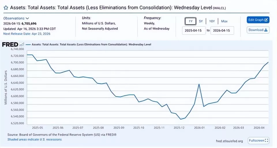 根据美联储最新公布的资产负债表显示:自从美伊战争开打之后,全球流动性紧缺,美联储不得不加速对金融市场注入大量流动性,以确保类似于2008年次贷危机的灾难不会发生。