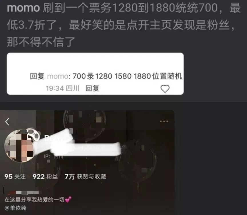 甚至还有票务承诺不管1880、1580还是1280,统统只要700块,相当于打了3.7折。