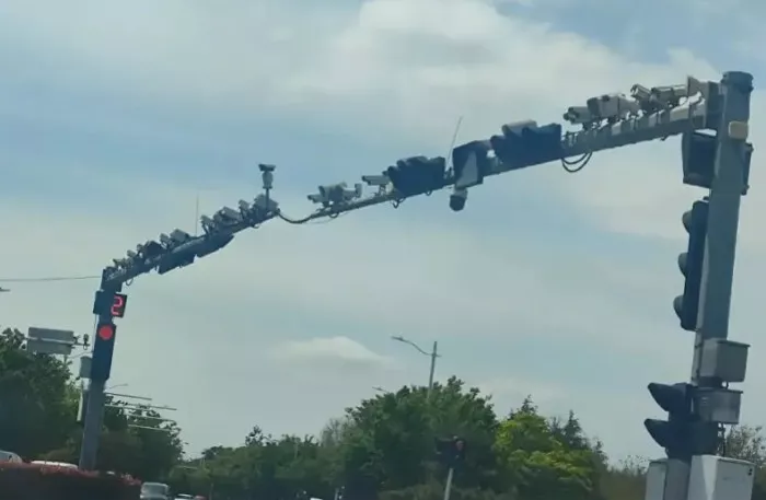 青岛一路口横杆装十余个摄像头。(网络图片)