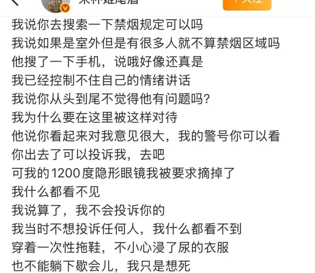 然而,警方的处置结果令人震惊:对于违规吸烟且动手伤人的男子,未作出任何处罚,执勤民警甚至称“公交站不属于室内区域,不纳入禁烟范围”;而劝阻吸烟的女子,被认定行为构成“侮辱”,拟处以行政拘留5日,且在派出所内被强制进行全身脱衣检查、如厕期间被全程监督,最终在胁迫下签署和解协议。