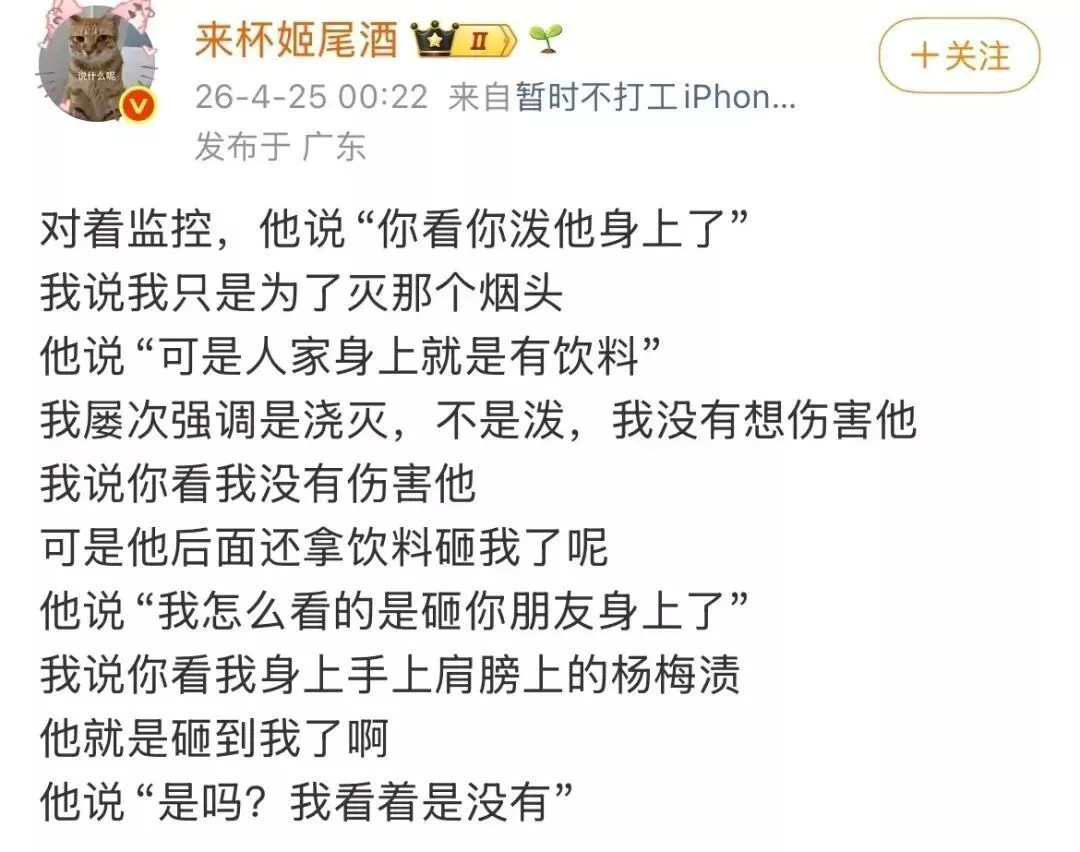 在持续的言语挑衅下,女子情绪失控,用手中饮料泼向烟头将其熄灭,此举引发男子不满,其随即拿起饮料瓶砸向女子面部。冲突升级后,双方均选择报警处理。