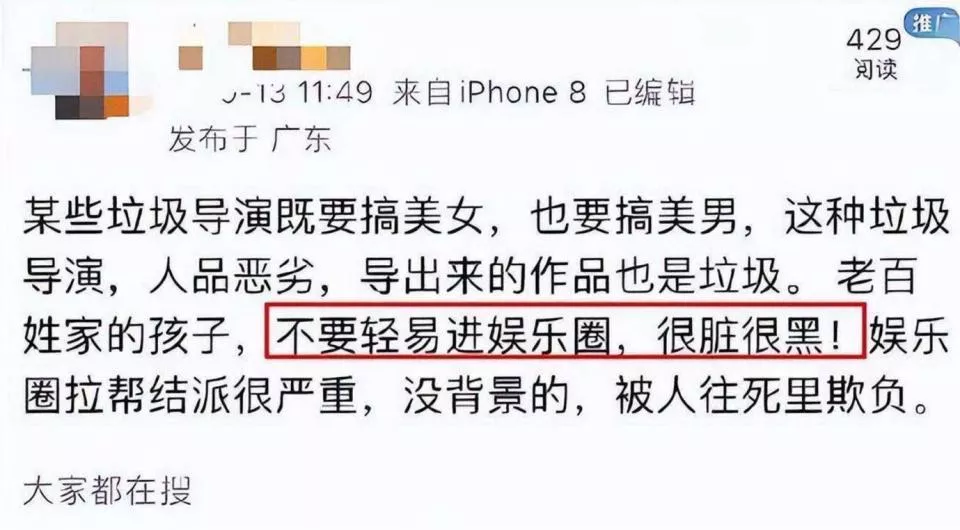 吴京当年在片场劝过一个小女孩:“千万别进娱乐圈,这里太脏了。 ”这话说得直白,但却是掏心窝子的大实话。 老百姓家的孩子,没背景、没人脉、没有试错成本,一旦踏进去,大概率成为资本的消耗品。 那些光鲜亮丽的“一夜爆红”故事,不过是幸存者偏差遮住了底下堆积如山的失败者。