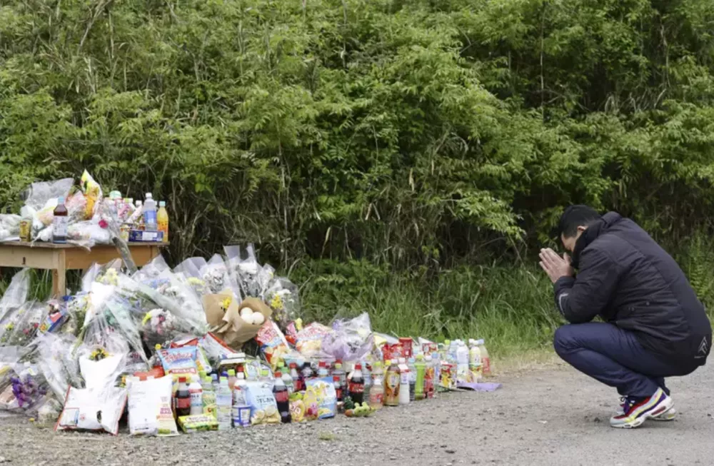 ·在发现结希遗体的地点附近,民众自发搭起了献花台。(日本共同社)