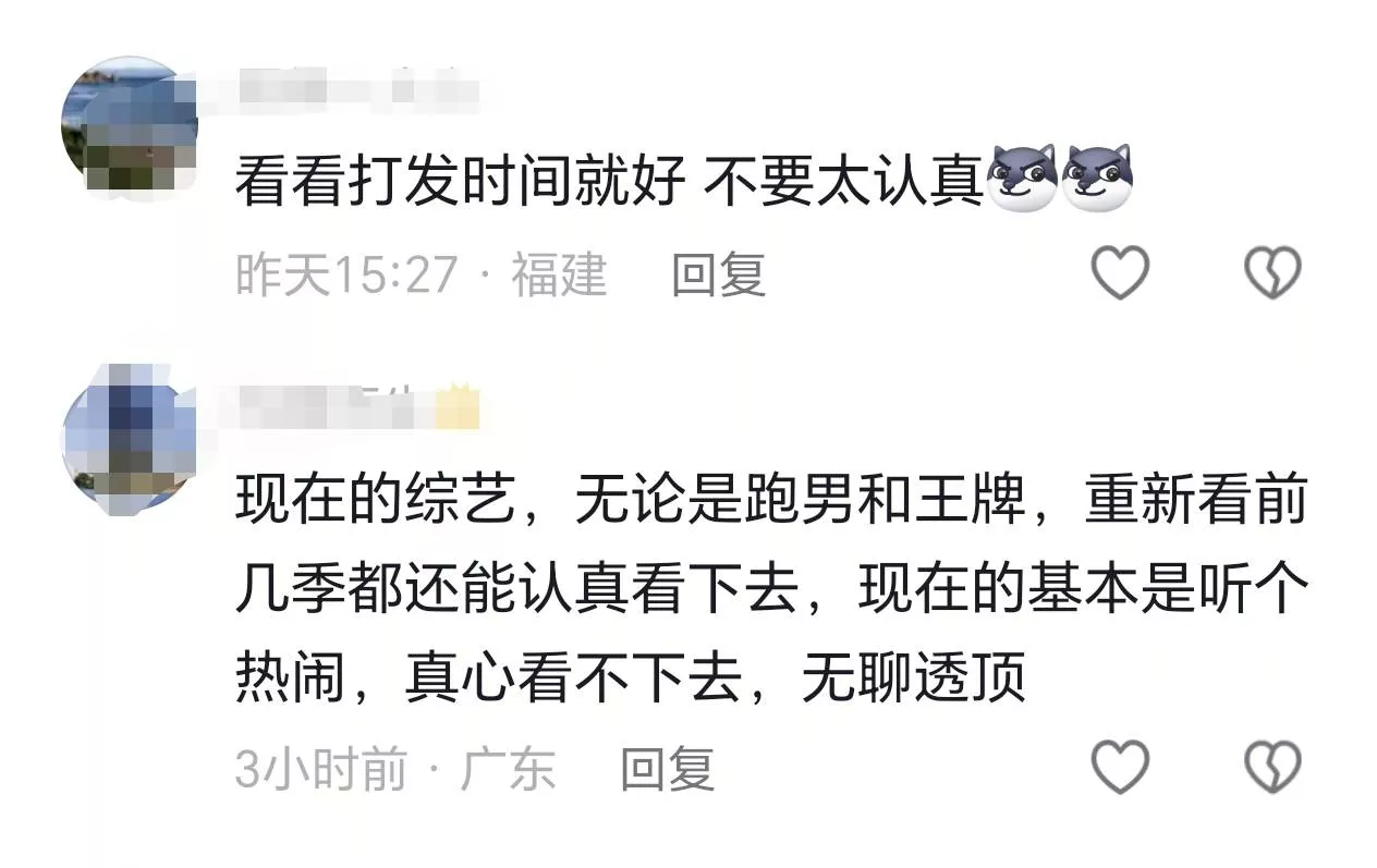 但节目组一味敷衍摆烂,靠情怀圈粉、靠流量蹭热度,只会不断消耗路人缘。