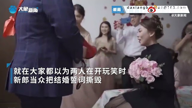 广东一新郎当众撕毁结婚誓词,质问新娘:嫁不嫁