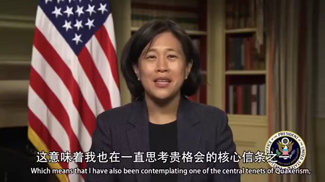 美贸易代表戴琪在华人精英组织百人会动情发言