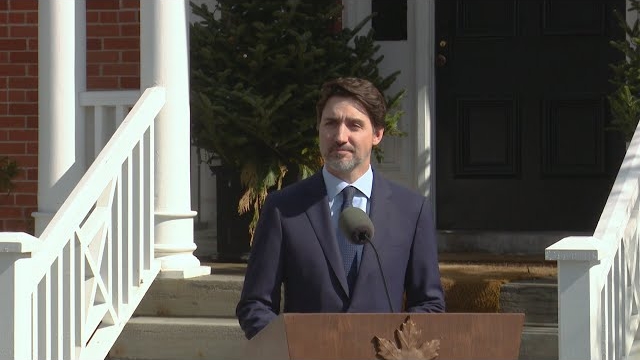 特鲁多家门口开发布会:在家办公难 妻子症状轻