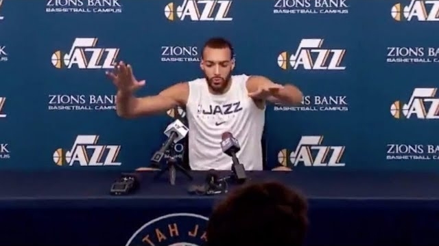 戈贝尔赛前结束采访后,刻意摸话筒