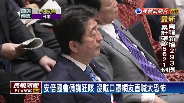 安倍发言时咳嗽不止 坐他身后的2名议员动作亮了