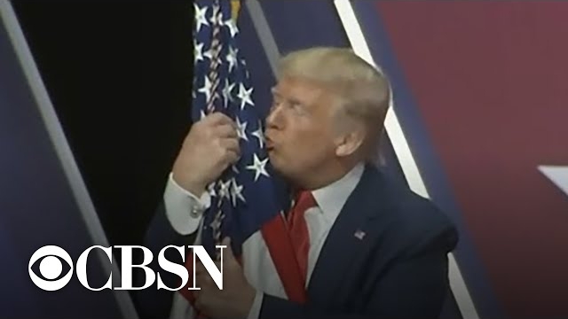 川普突然当众抱住国旗 满脸深情一阵猛亲