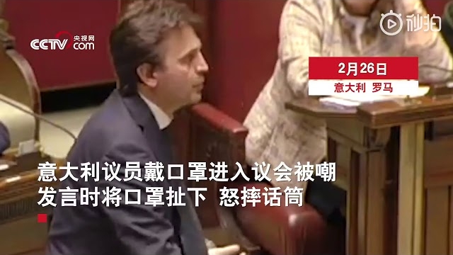意大利议员戴口罩进议会被嘲 发言时怒摔话筒