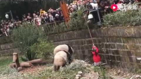 女孩从护栏掉落 被5只大熊猫“围观”