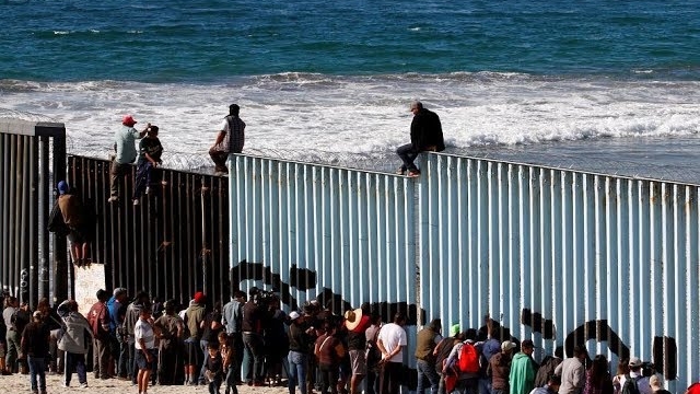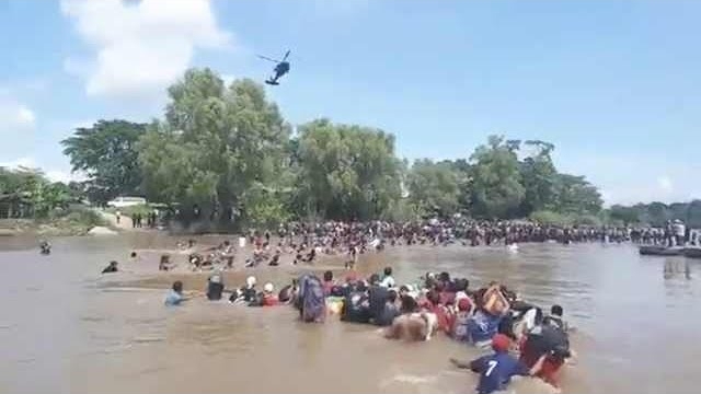 实拍第二批中美洲移民"大渡河" 直升机气流驱逐