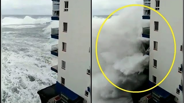 12米巨浪席卷西班牙 海景房阳台瞬间卷走