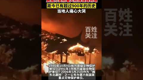 中国现存最长木拱廊桥、福建屏南万安桥遭焚毁 现场火光冲天