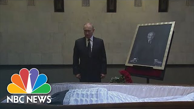 普京与戈尔巴乔夫遗体告别 献花并鞠躬后离开